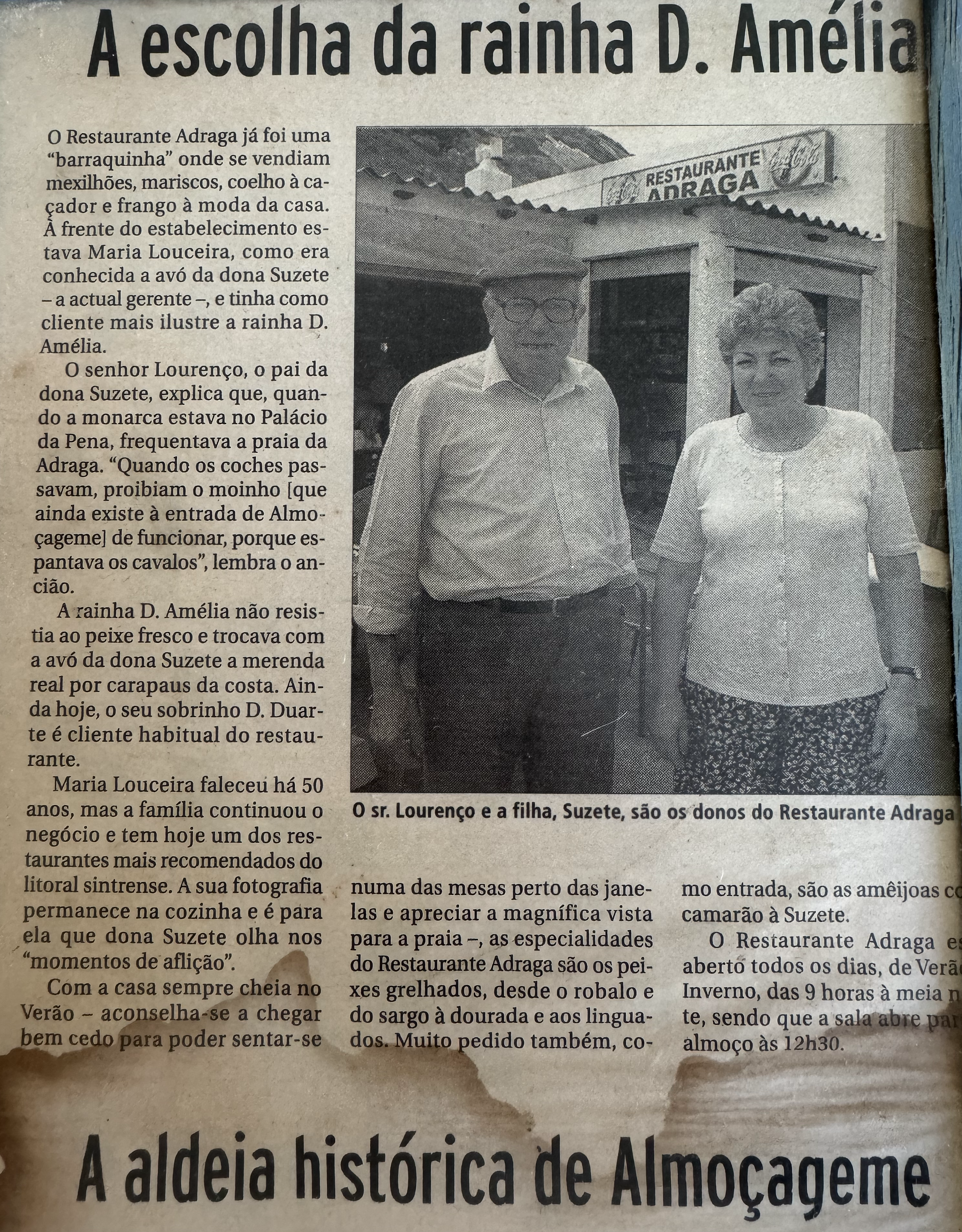 A simplicidade do local conquistou a Rainha D. Amélia, que passava longas tardes afastada da sua comitiva, saboreando os petiscos preparados pela proprietária, com quem mantinha longas conversas. Hoje, o restaurante, já na quinta geração da família, permanece um local simples, com serviço atento e dedicado a criar memórias inesquecíveis para quem o visita.